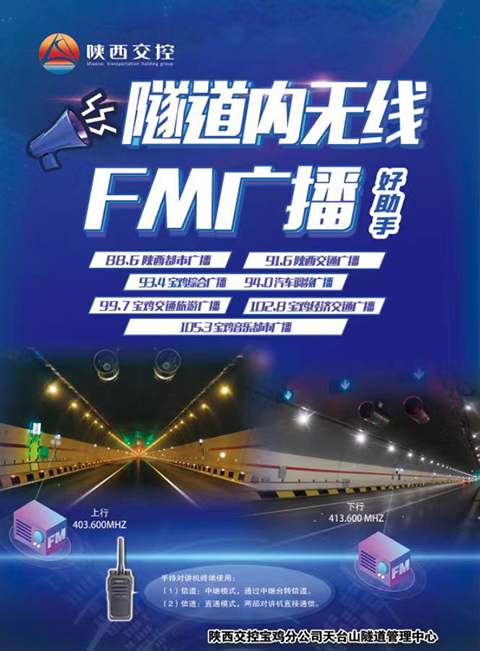因為隧道管理所設置在秦嶺南麓,當?shù)責o法接受到FM廣播信號,所以FM信號由寶雞市區(qū)空間接收都和,通過光纜傳輸至隧道管理所,再由隧道管理所近端機傳輸至隧道內(nèi)遠端機。